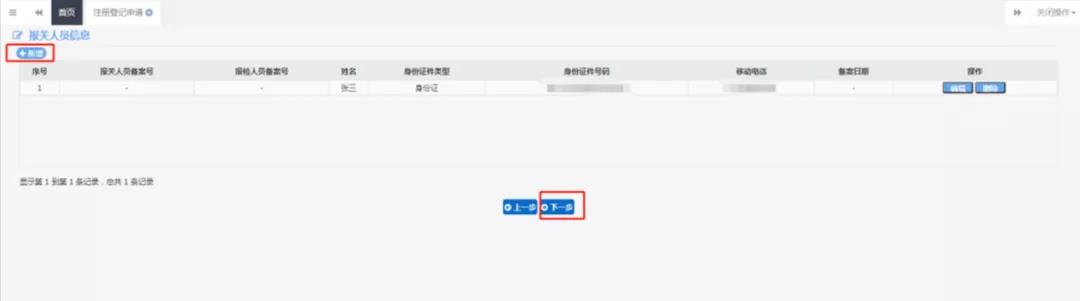 8、需向海關(guān)申請報(bào)關(guān)人員備案,則填寫此界面信息,如無需申請,則點(diǎn)擊“下一步”: