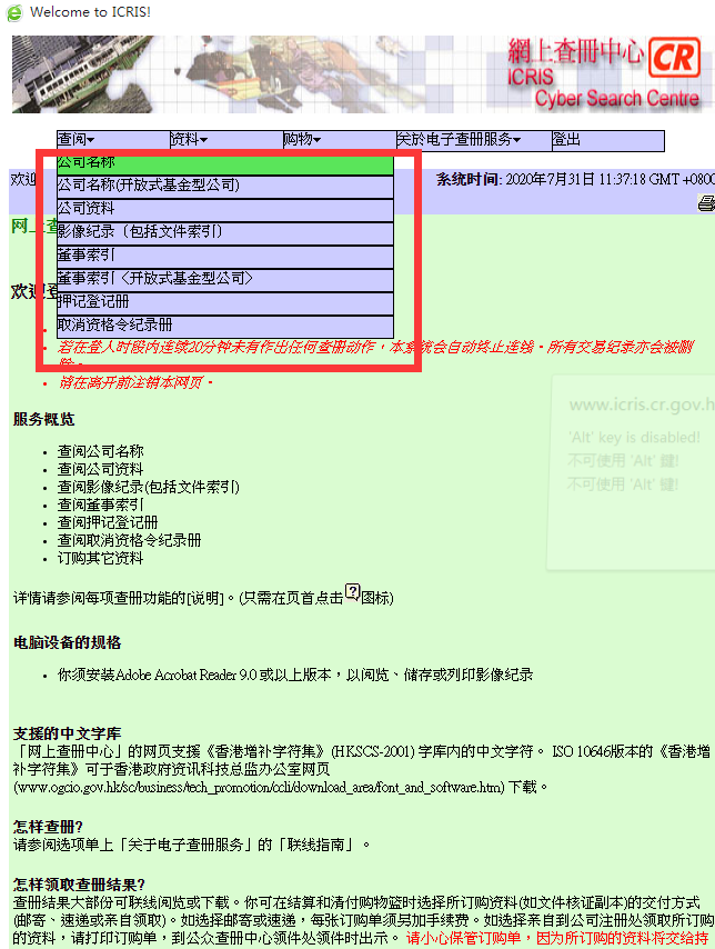 1、打開網(wǎng)上查冊(cè)中心網(wǎng)址:www.icris.cr.gov.hk ,不要百度搜索注冊(cè)處,香港的網(wǎng)站和大陸網(wǎng)站是有很多不同的,滑動(dòng)至最下方,點(diǎn)擊紫色字體。