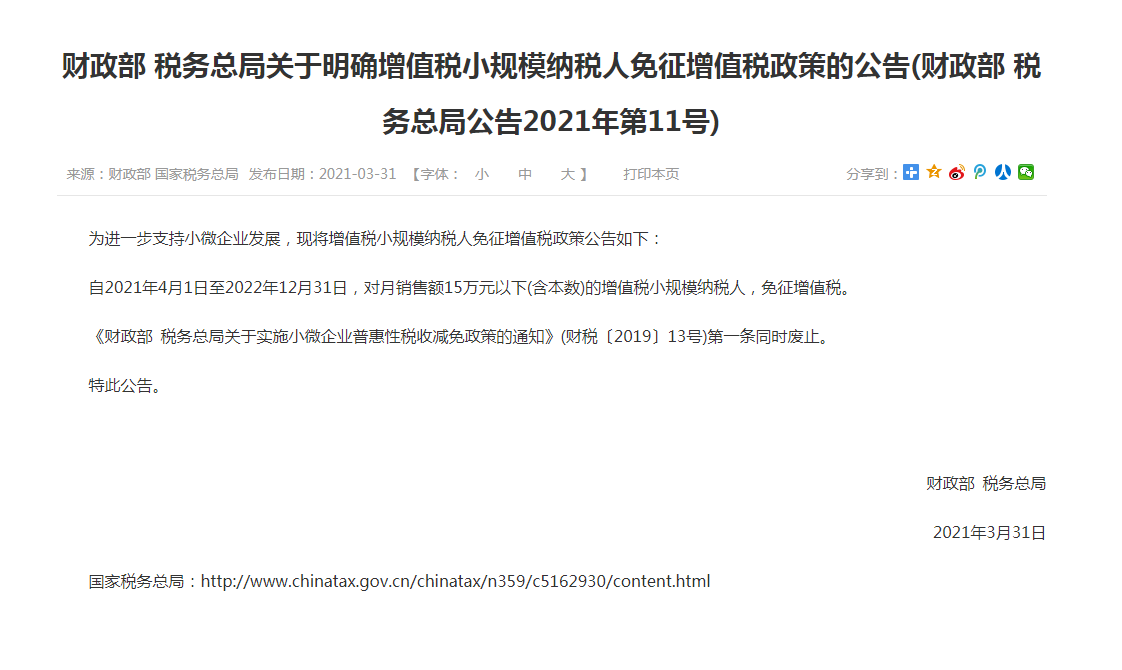 但小規(guī)模納稅人還有另外一個政策,月銷售額不超過15萬或季度銷售額不超過45萬,免征增值稅,該項政策持續(xù)至2022年12月31日。