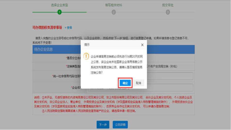 10、公示20天期滿可以進(jìn)行注銷操作,并確定企業(yè)可以進(jìn)行簡(jiǎn)易注銷。