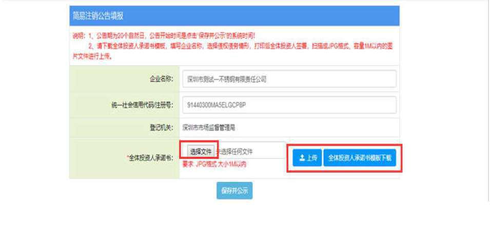 7、先下載承諾書(shū),填寫好法人簽字加蓋公章,拍照或掃描,點(diǎn)擊選擇文件找到承諾書(shū),然后上傳,保存并公示。