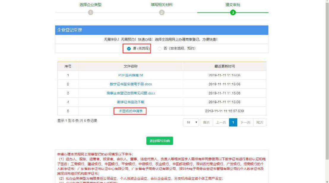 12、選擇全流程辦理,下載需要簽名的文件,插入U(xiǎn)盾簽名后提交。審核通過(guò)后即辦理完成。